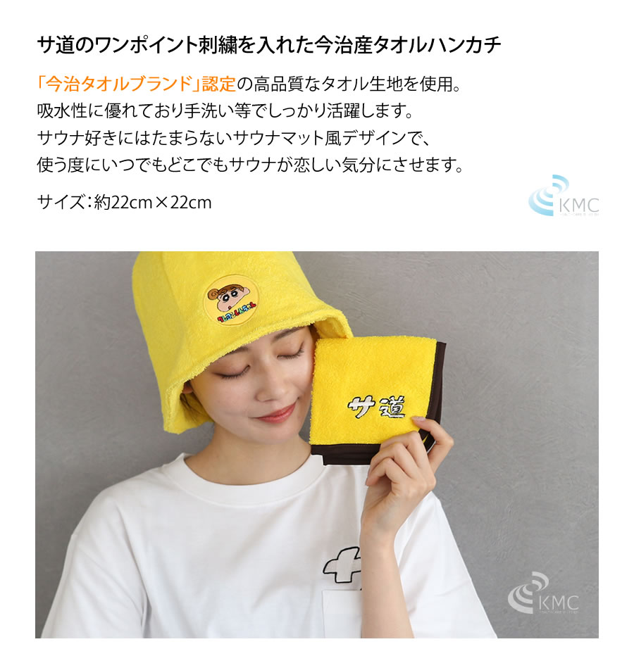サウナマットをイメージし、サ道のワンポイント刺繍を入れた今治産タオルハンカチ。