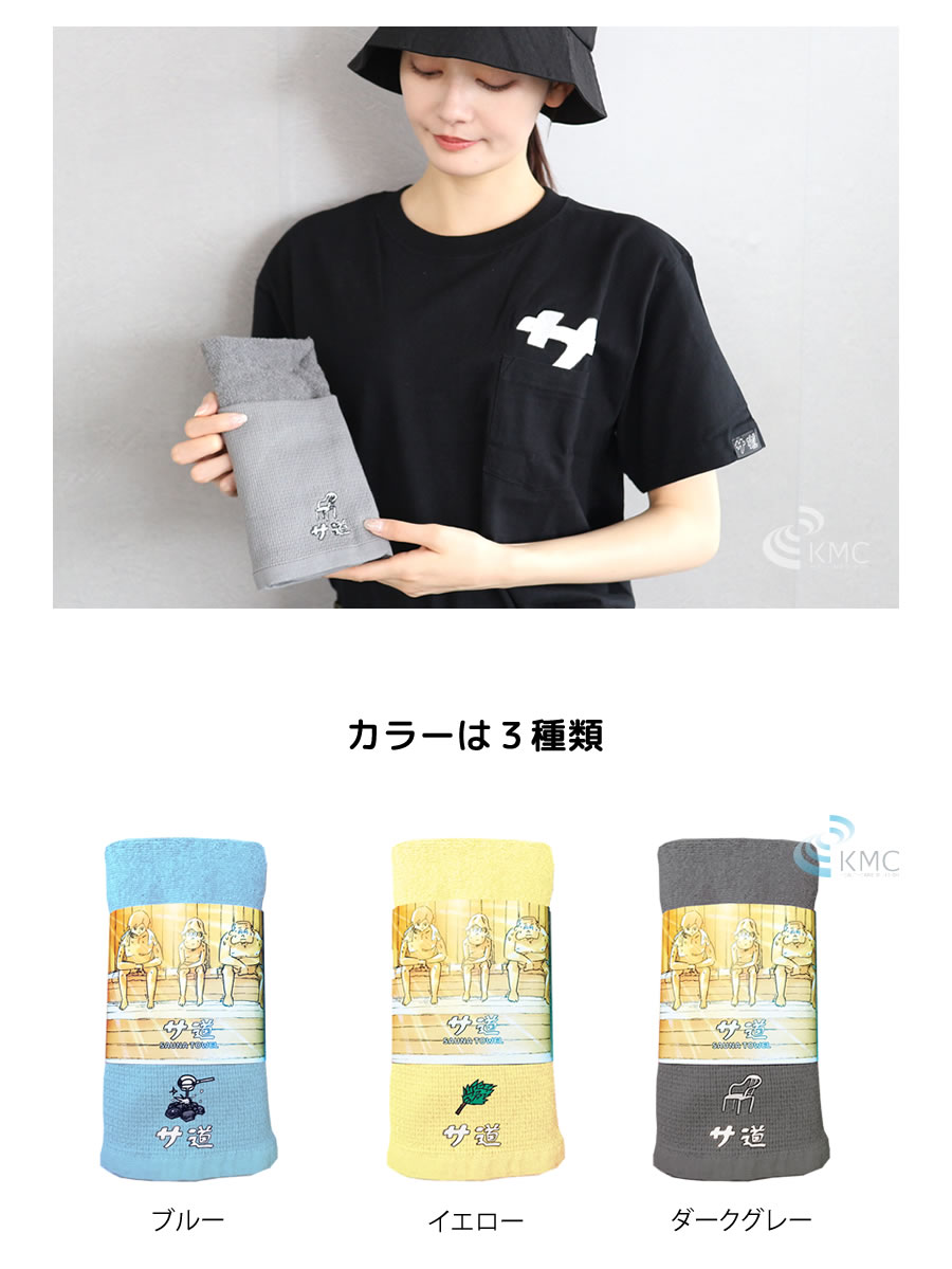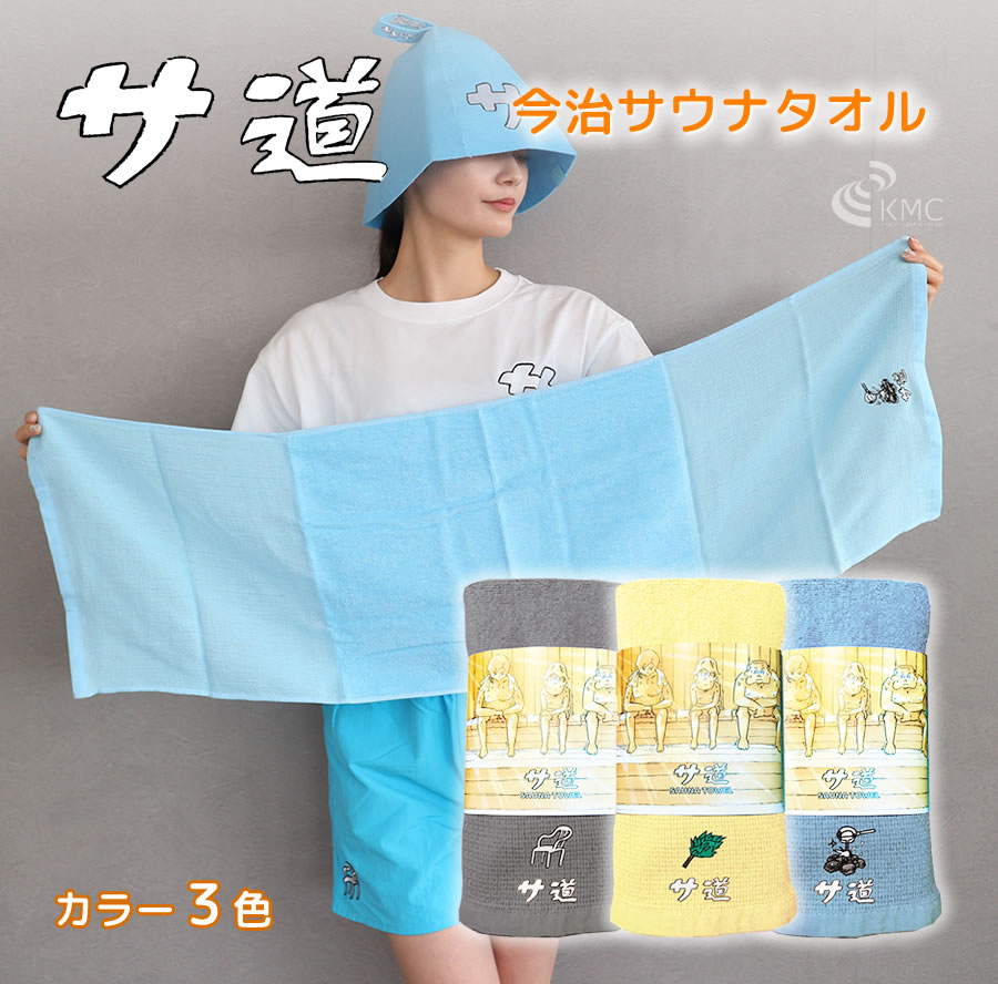 「サ道」ロゴとサウナモチーフの刺繍が可愛い今治産サウナタオル。