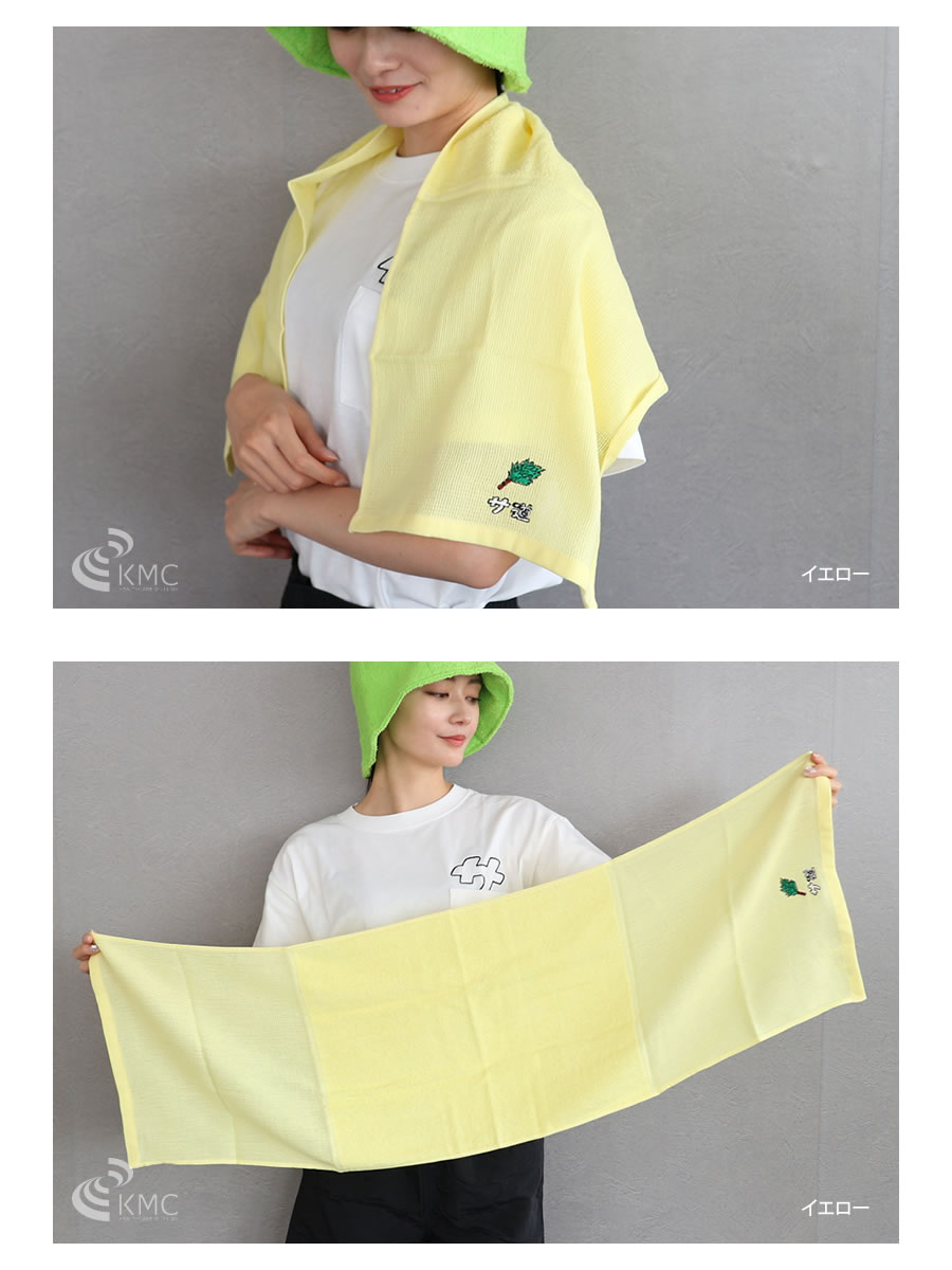 中央部分は吸水性の良いタオル地、タオル両端は結びやすいメッシュ地で、サウナでの使用に最適なデザイン。
