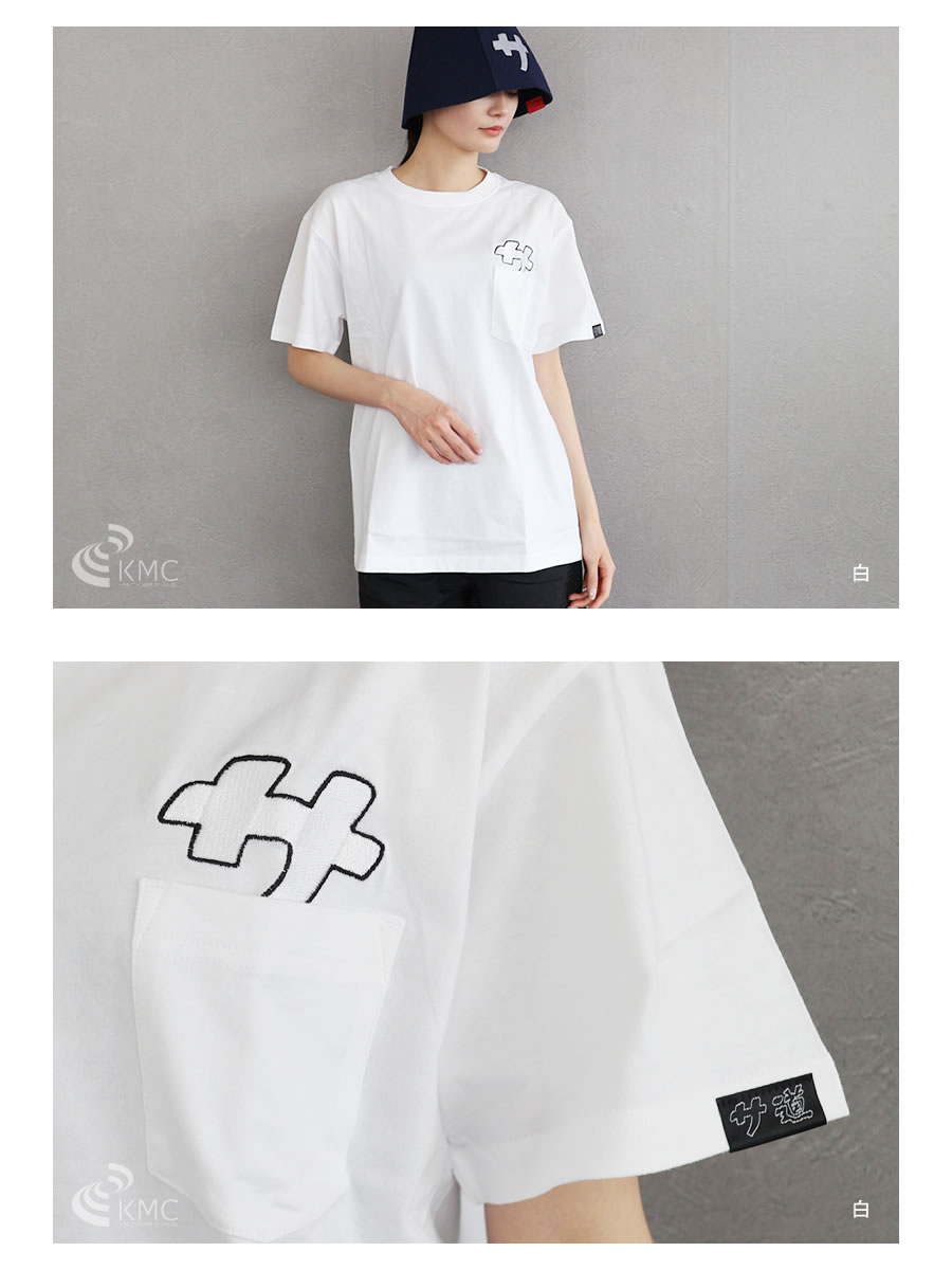 ポケットから顔を出す可愛い『サ』の刺繍をデザイン。一枚でさまになる5.6オンスのポケットTシャツ。