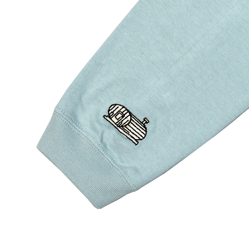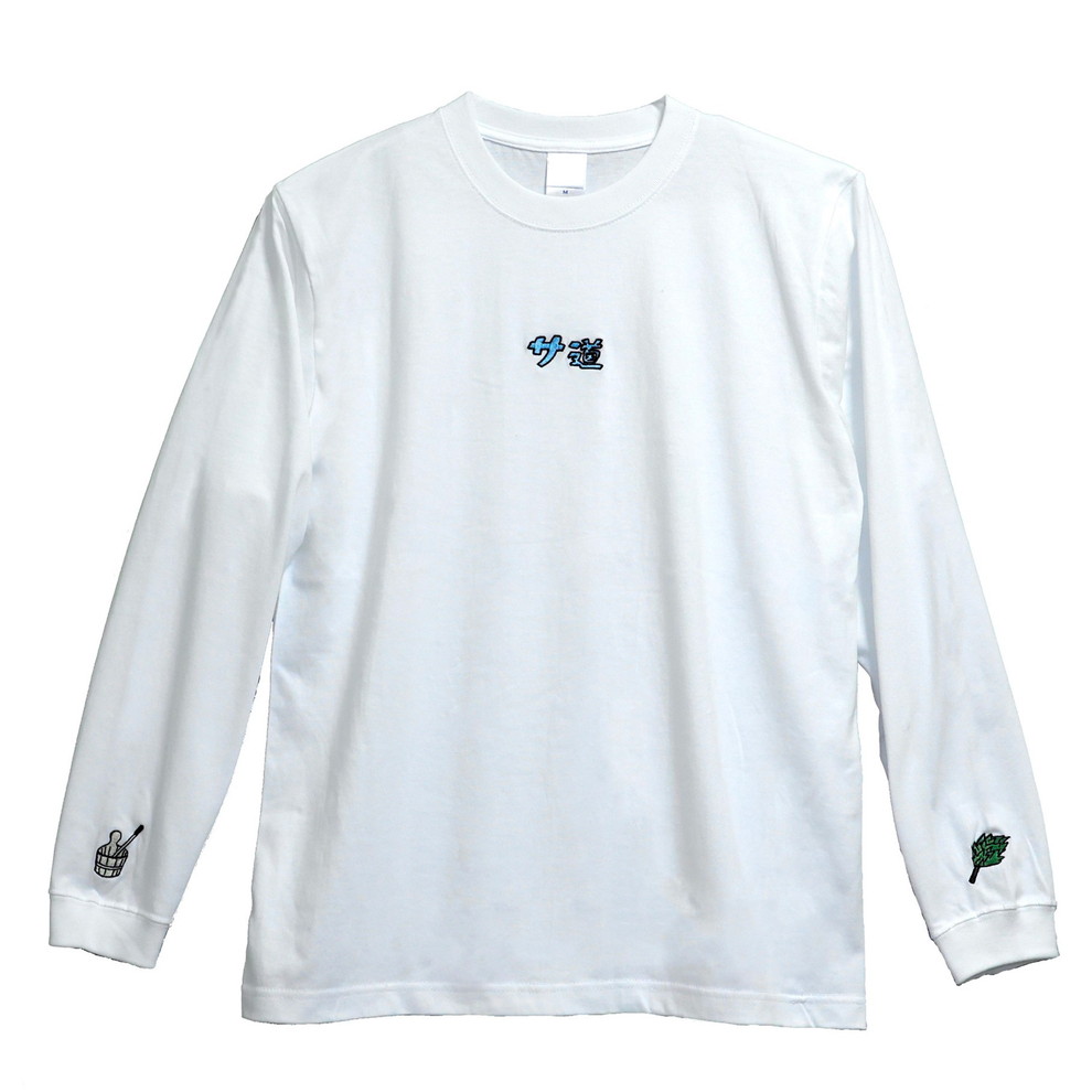 胸にサ道と両袖部分に可愛いサウナを表現した刺繍を入れた、ユニセックスのロングスリーブTシャツ。