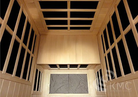 ドア以外の全ての壁とベンチ内・ベンチ下・足裏に遠赤外線ヒーターを配置し全身くまなく投射し温めます。「全ての外壁と内壁の間に断熱材を充填」した保温性に優れたサウナ室内は、お肌の弱い方にも安心なマイルドで浸透率の高い遠赤外線サウナをお楽しみ頂けます。